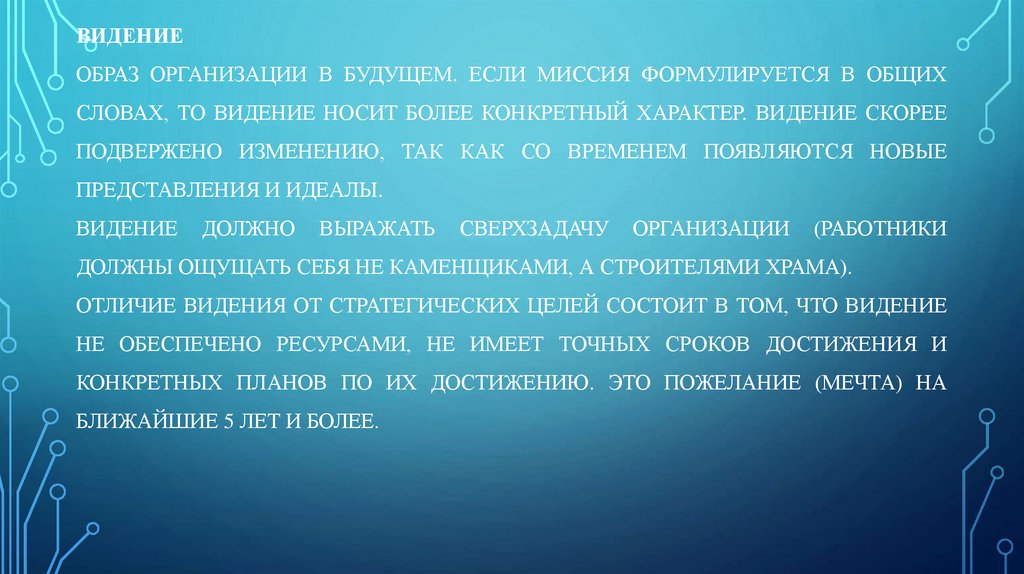 ОТЛИЧИЕ ВИДЕНИЯ ОТ СТРАТЕГИЧЕСКИХ ЦЕЛЕЙ СОСТОИТ В ТОМ, ЧТО ВИДЕНИЕ