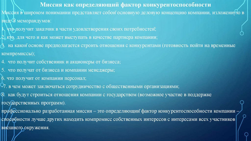профессионально разработанная миссия – это определяющий фактор конкурентоспособности компании –