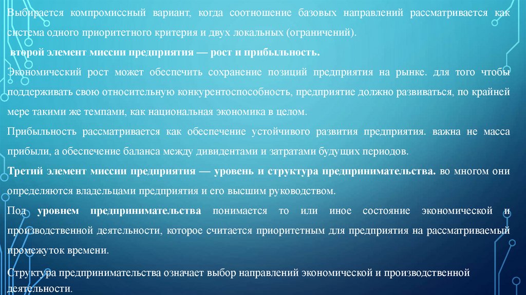 второй элемент миссии предприятия — рост и прибыльность.