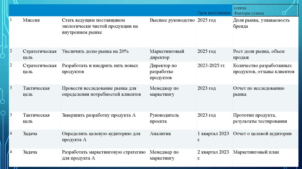 2. Инновационные цели (50% объема продаж должно быть обеспечено за счет продуктов и услуг, внедренных за