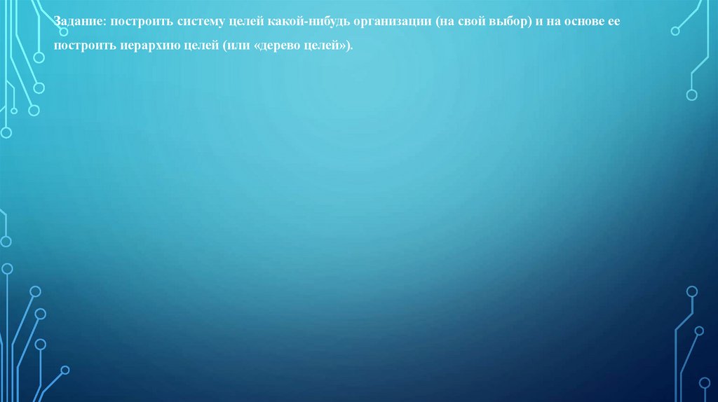 Задание: построить систему целей какой-нибудь организации (на свой выбор) и на основе еепостроить иерархию целей (или «дерево целей»).