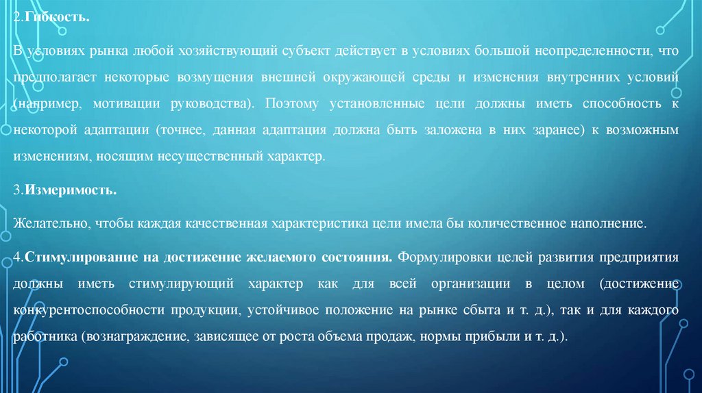 Сформулированные цели развития предприятия должны удовлетворять следующим требованиям.