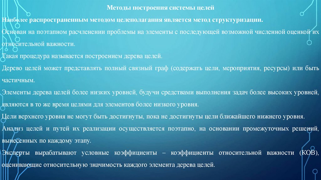 Методы построения системы целейНаиболее распространенным методом целеполагания является метод структуризации.