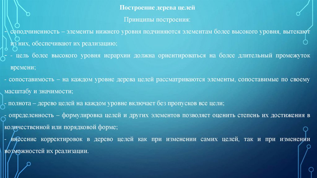 При формировании дерева целей следует помнить, что достижение каждой цели должно быть