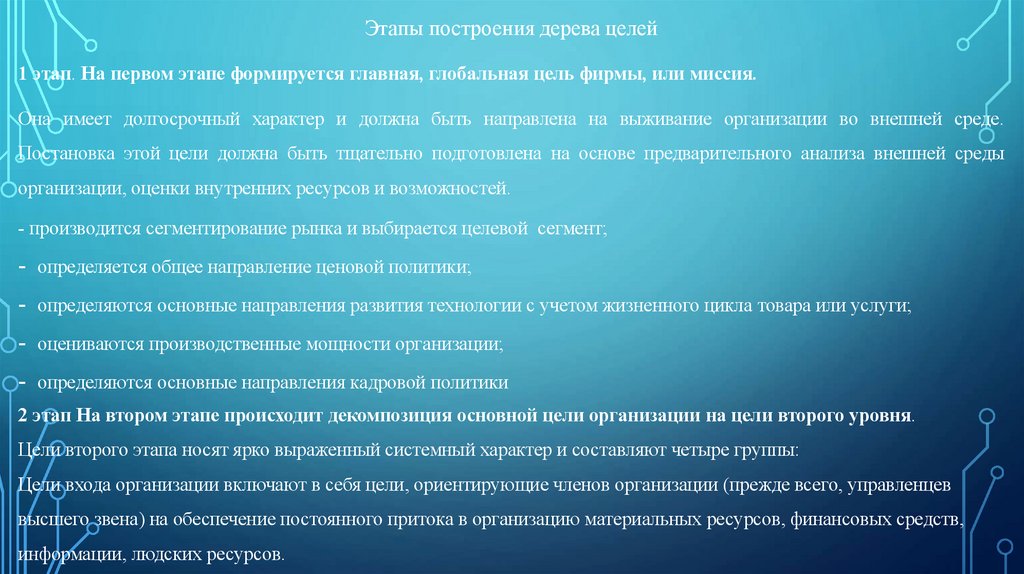 2 этап На втором этапе происходит декомпозиция основной цели организации на цели второго уровня.