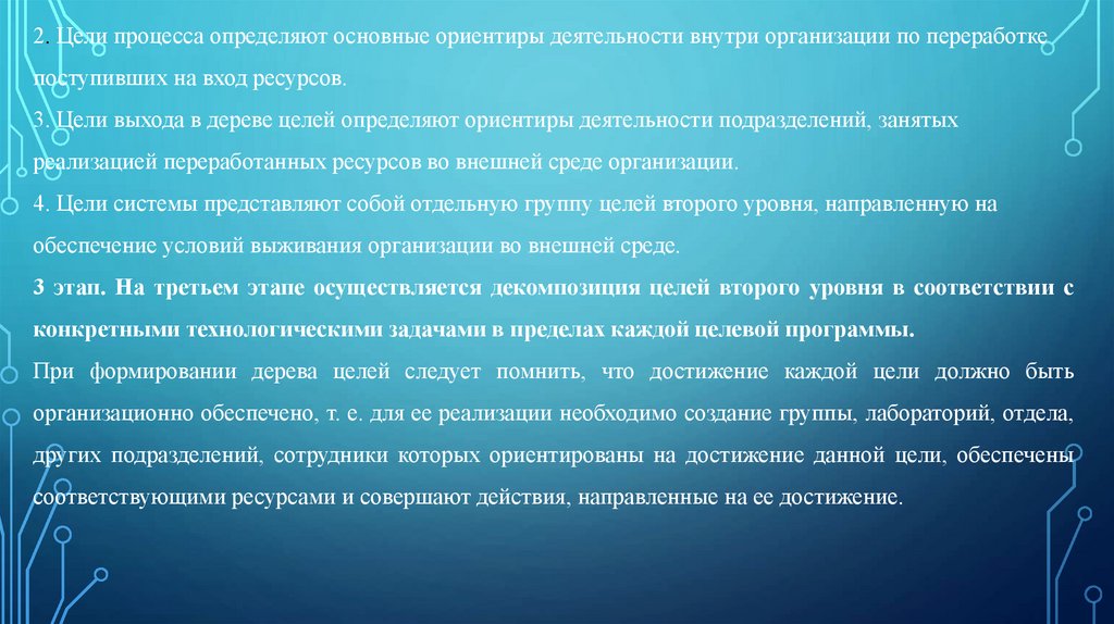 2. Цели процесса определяют основные ориентиры деятельности внутри организации по переработкепоступивших на вход ресурсов.