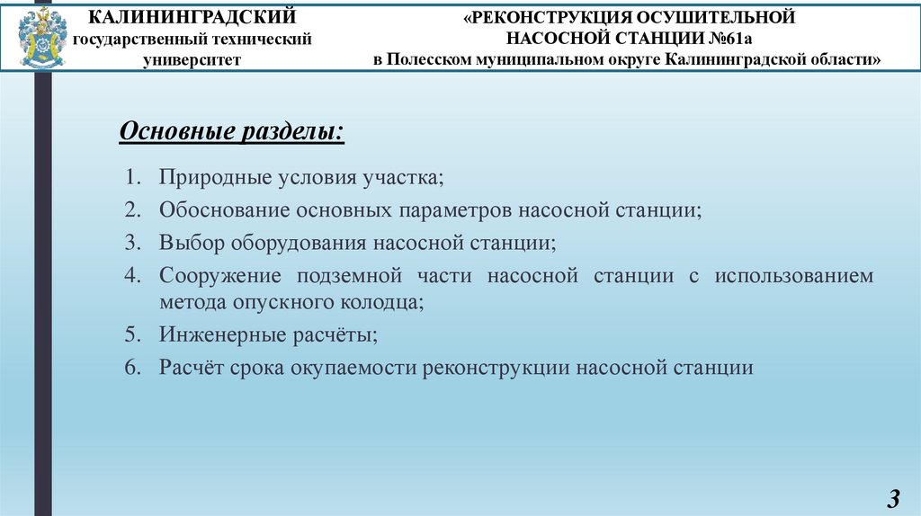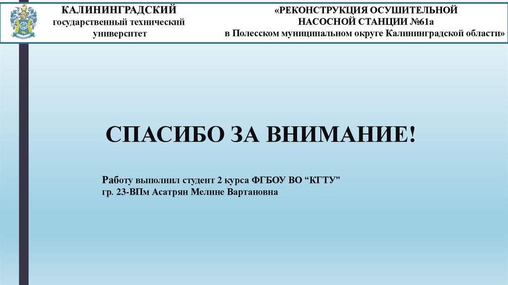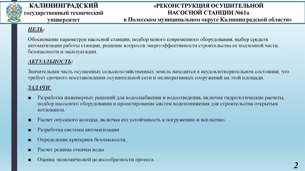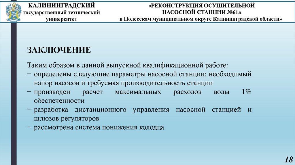 1. «реконструкция осушительной насосной станции №61А В ПОЛЕССКОМ муниципальном округе калининградской области» Выпускная
