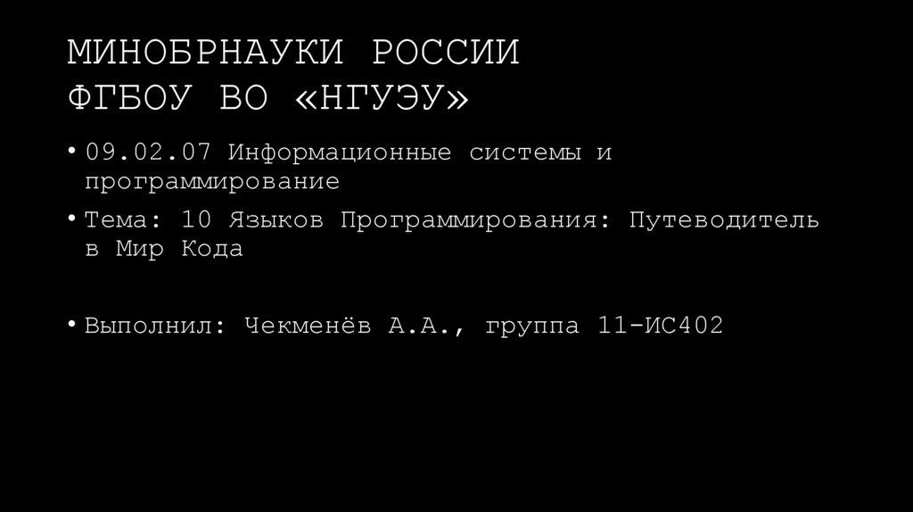 • Выполнил: Чекменёв А.А., группа 11-ИС402