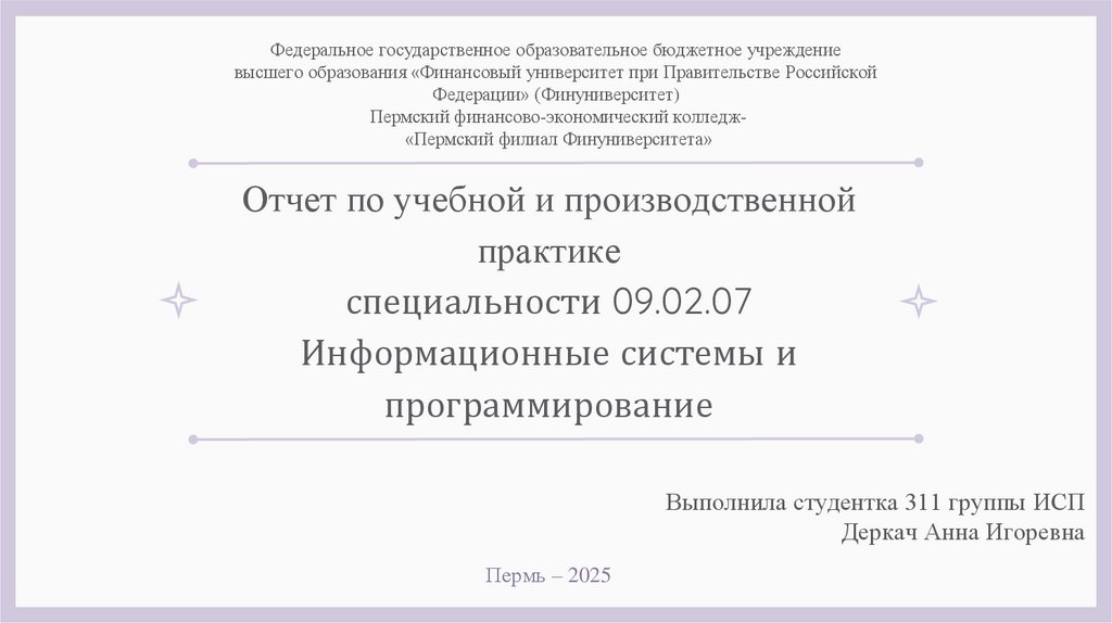 Отчет по учебной и производственной практике специальности 09.02.07 Информационные системы и программирование