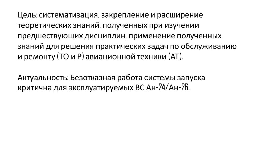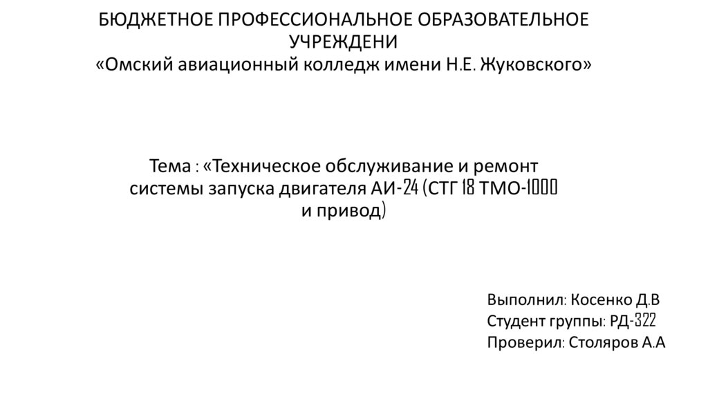 Тема : «Техническое обслуживание и ремонтсистемы запуска двигателя АИ-24 (СТГ 18 ТМО-1000