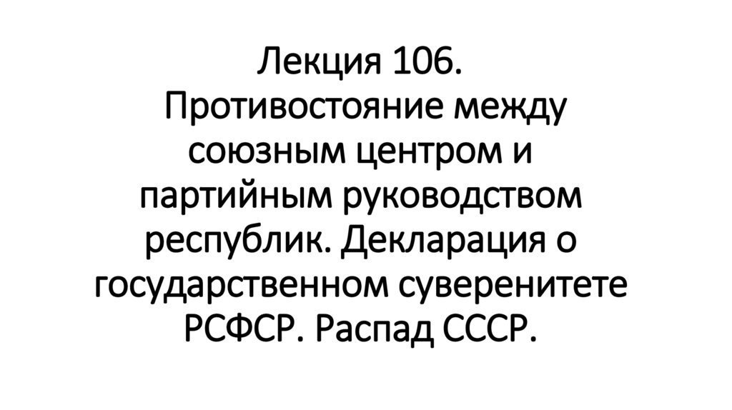 1. Лекция 106. Противостояние между союзным центром и партийным руководством республик. Декларация о государственном суверенитете