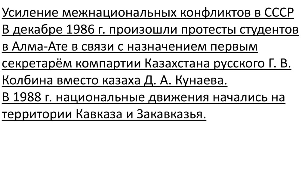Усиление межнациональных конфликтов в СССРВ декабре 1986 г. произошли протесты студентов