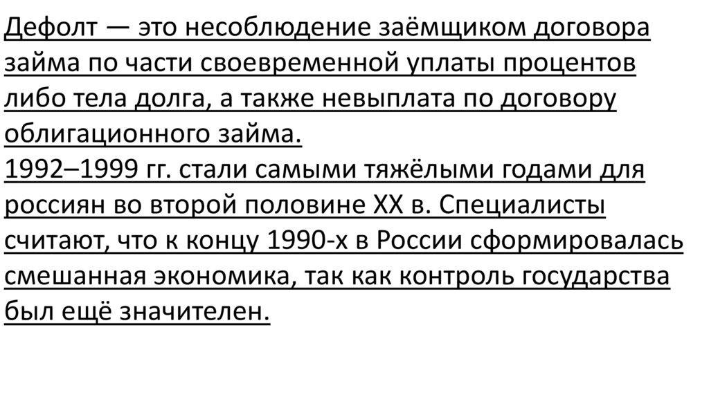 Дефолт — это несоблюдение заёмщиком договоразайма по части своевременной уплаты процентов