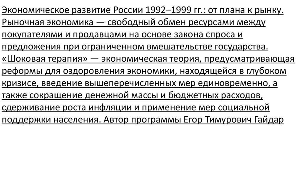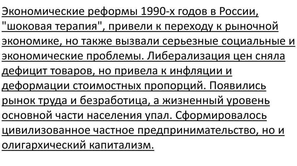 Экономические реформы 1990-х годов в России,"шоковая терапия", привели к переходу к рыночной