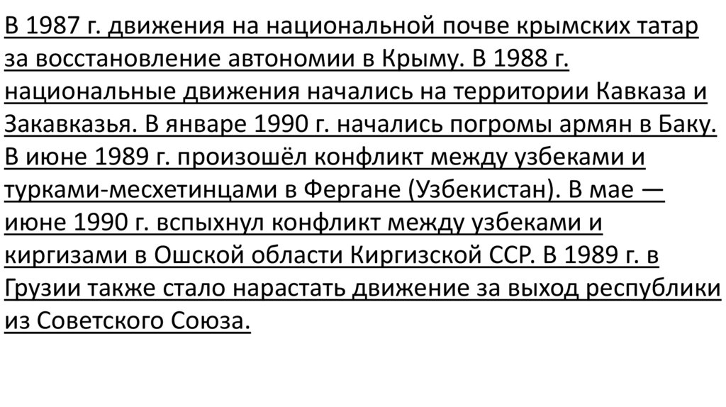 В 1987 г. движения на национальной почве крымских татарза восстановление автономии в Крыму. В 1988 г.