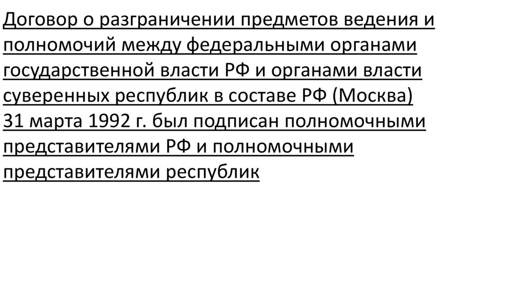 Договор о разграничении предметов ведения иполномочий между федеральными органами