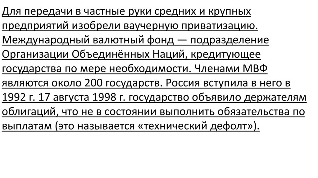 Для передачи в частные руки средних и крупныхпредприятий изобрели ваучерную приватизацию.