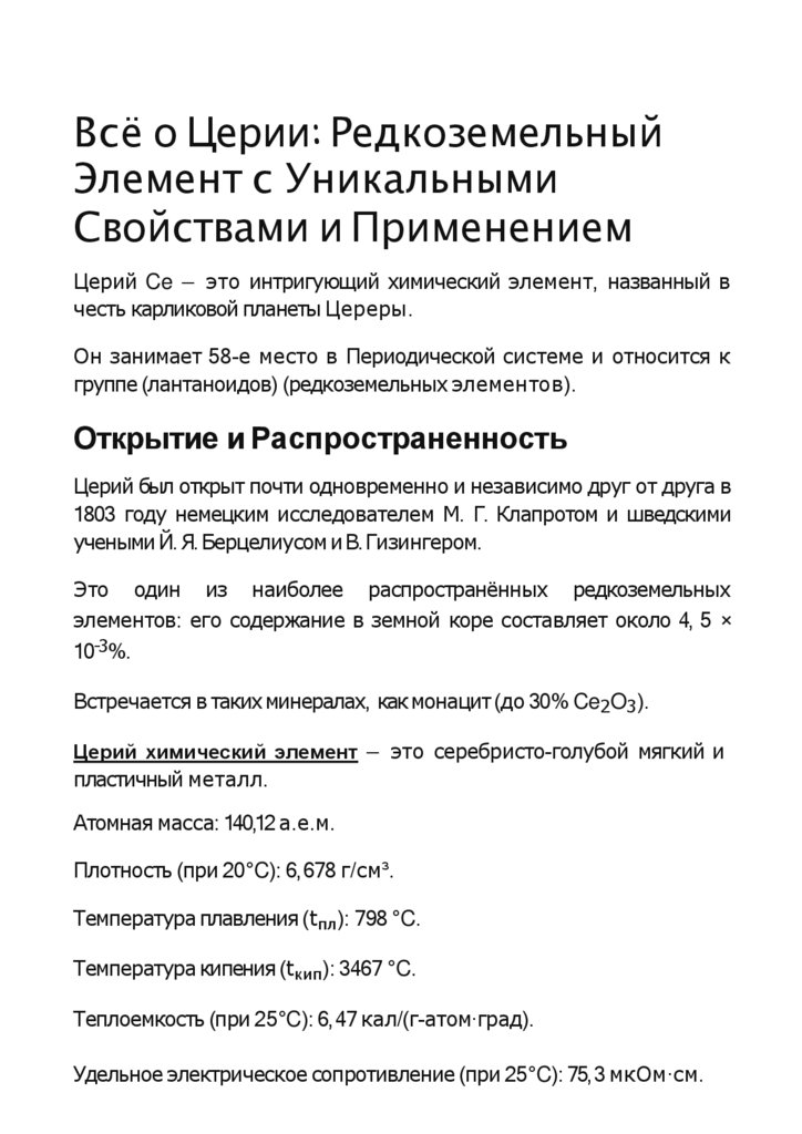 Всё о Церии: РедкоземельныйЭлемент с Уникальными