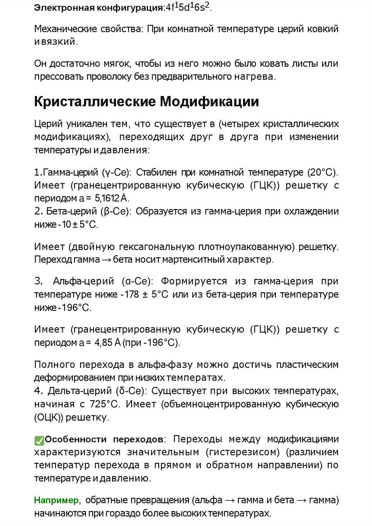 2. Бета-церий (β-Ce): Образуется из гамма-церия при охлаждении