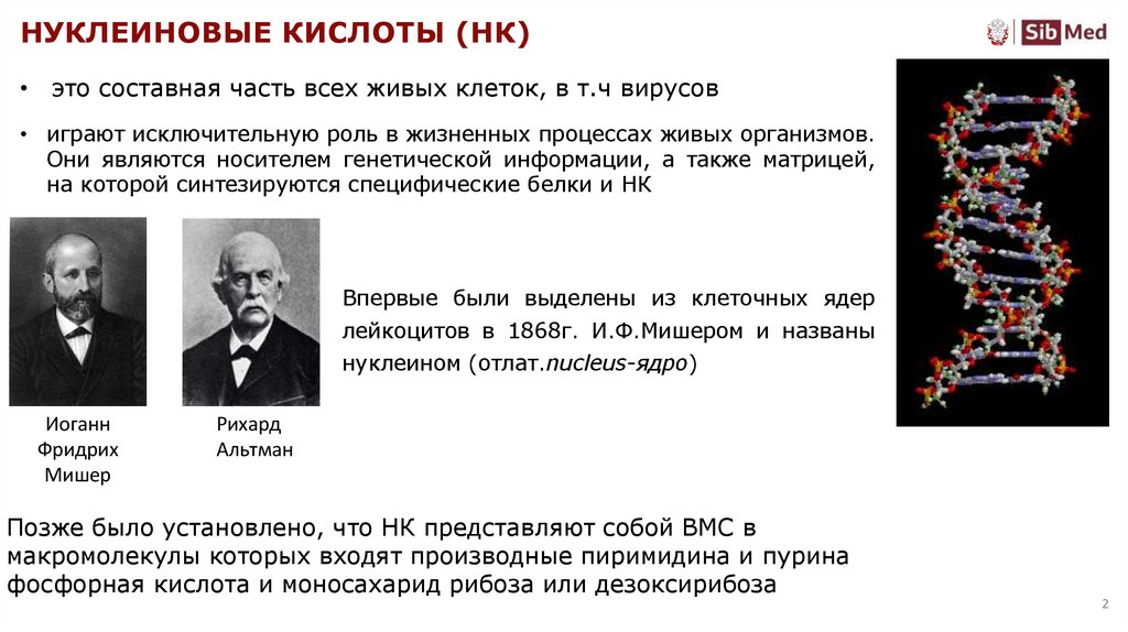 НУКЛЕИНОВЫЕ КИСЛОТЫ (НК)• это составная часть всех живых клеток, в т.ч вирусов