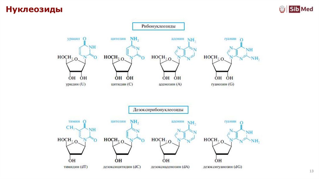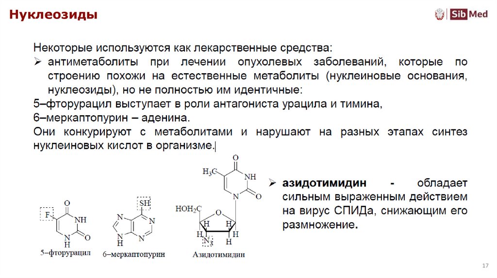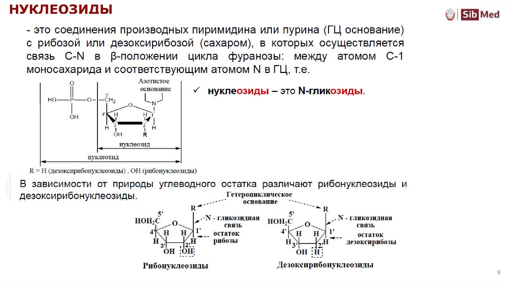 • НУКЛЕОЗИДЫ - соединения производных пиримидина или пурина с рибозой,