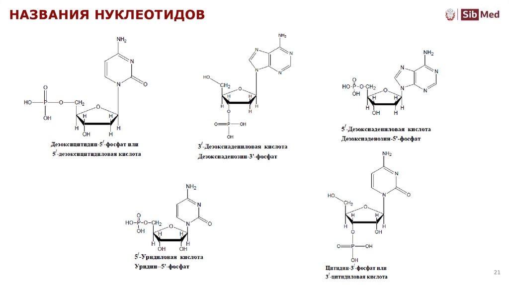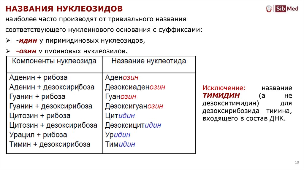 НАЗВАНИЯ НУКЛЕОЗИДОВнаиболее часто производят от тривиального названия