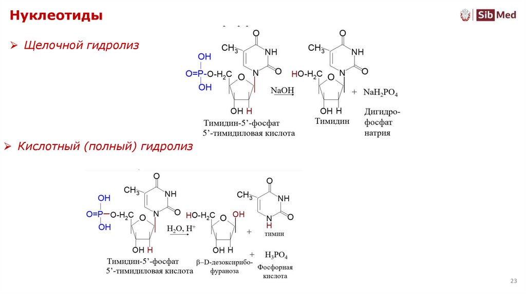конечные продукты гидролиза: тимин, цитозин, аденин, гуанин, D-дезоксирибоза и