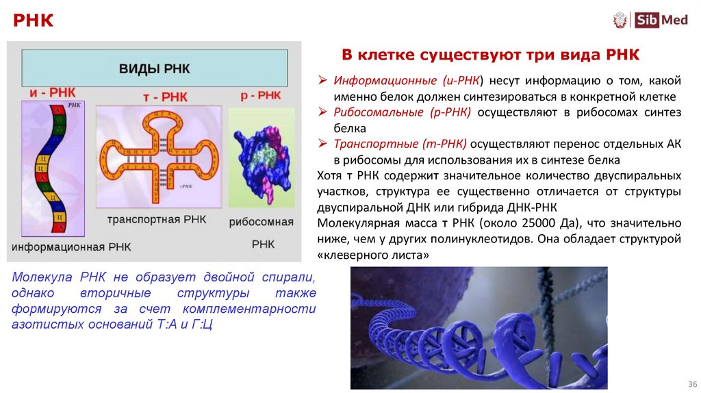 ⮚ Молекулы РНК играют важную роль в биосинтезе белков