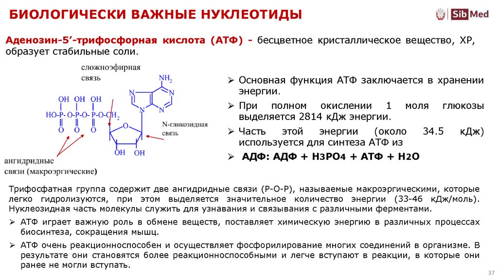 БИОЛОГИЧЕСКИ ВАЖНЫЕ НУКЛЕОТИДЫ38