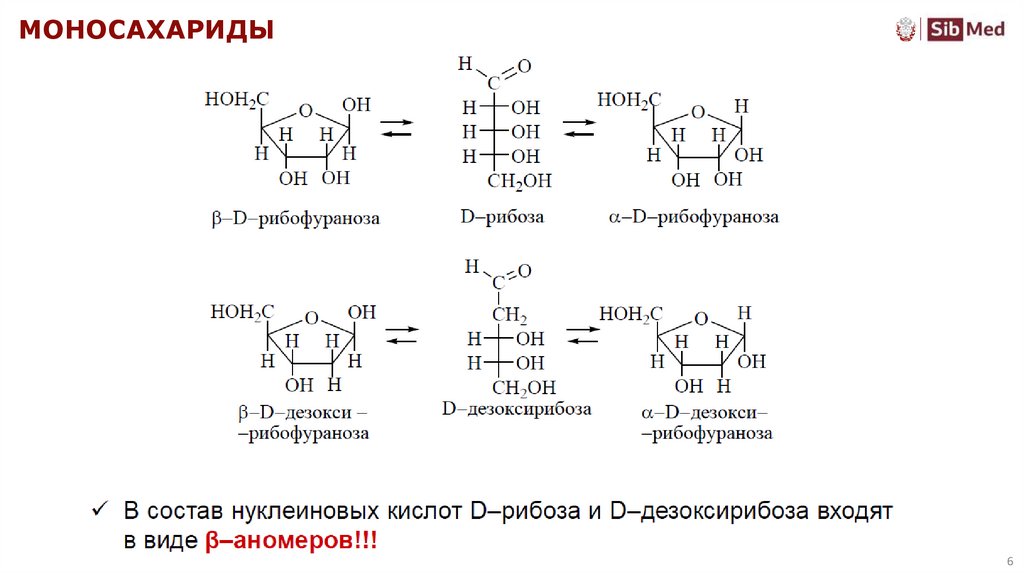 • углеводный остаток - D-рибоза и 2-дезоксиD-рибоза