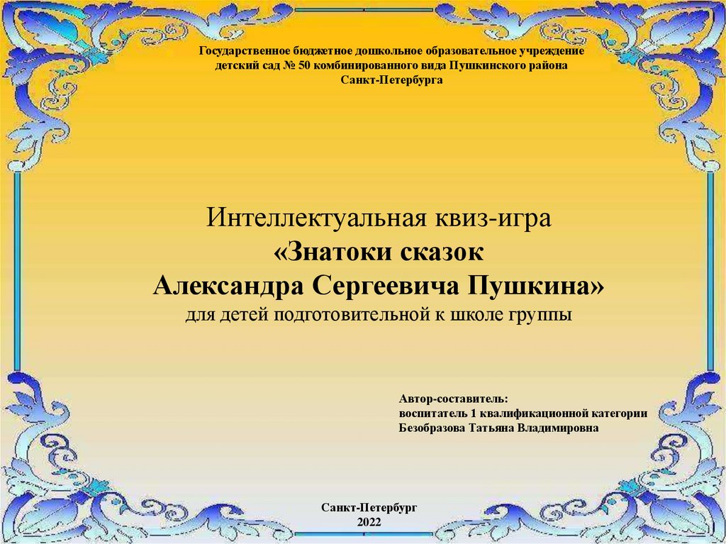 Государственное бюджетное дошкольное образовательное учреждениедетский сад № 50 комбинированного вида Пушкинского района