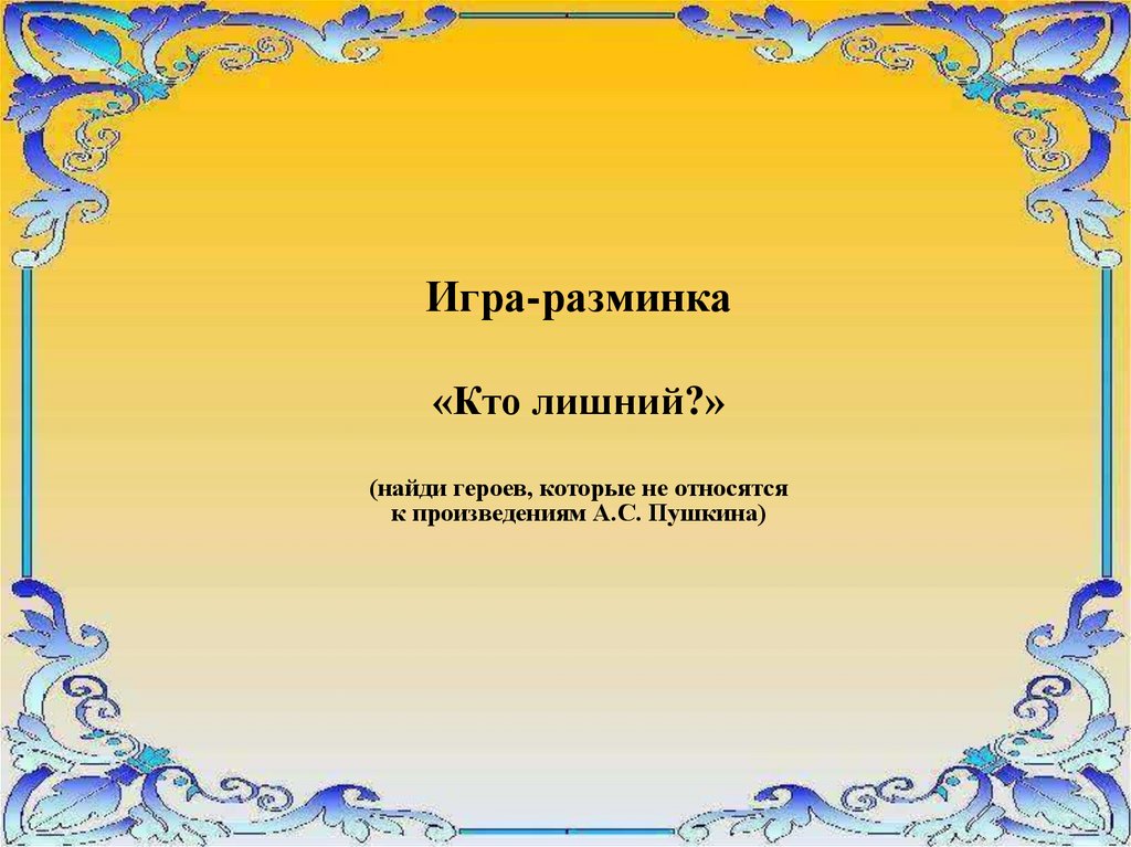 Интеллектуальная квиз-игра «Знатоки сказок Александра Сергеевича Пушкина»