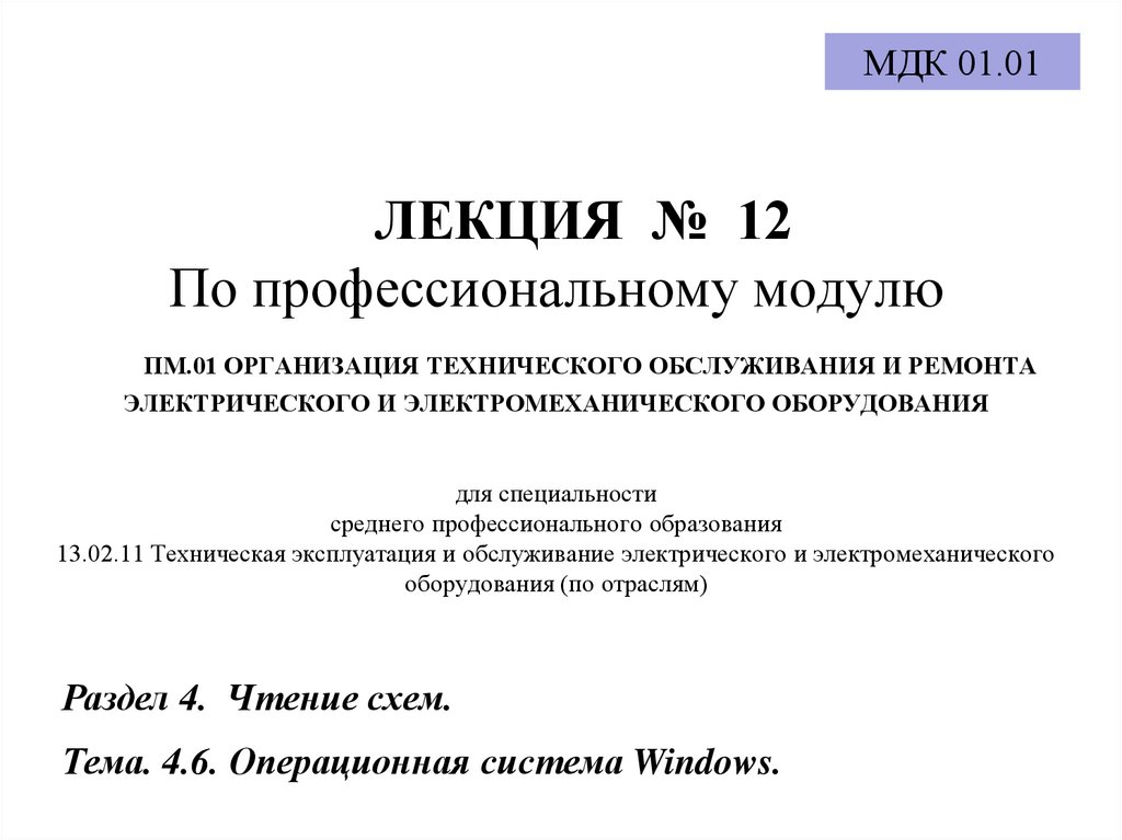 МДК 01.01ЛЕКЦИЯ № 12