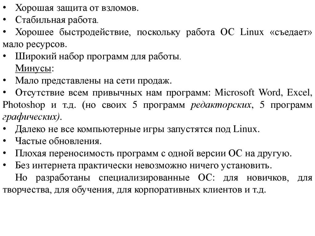 • Отсутствие всем привычных нам программ: Microsoft Word, Excel,