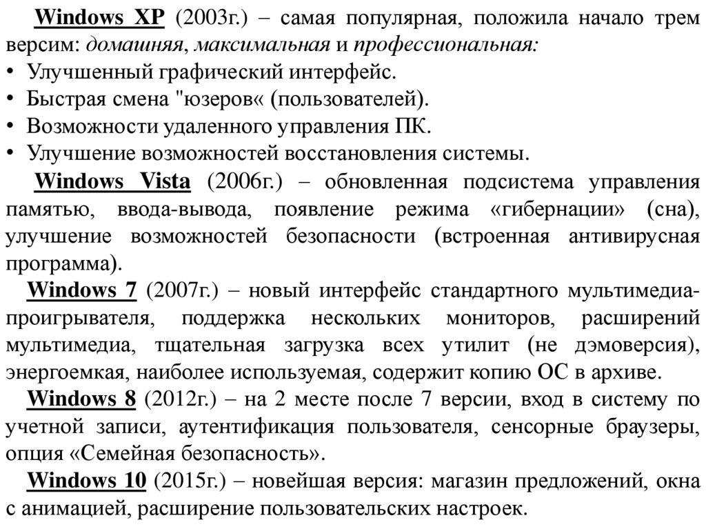Windows XP (2003г.) – самая популярная, положила начало тремверсим: домашняя, максимальная и профессиональная: