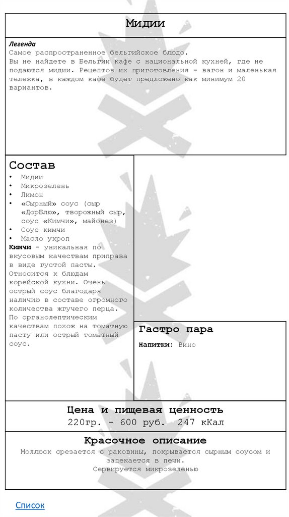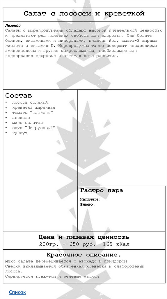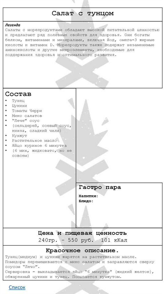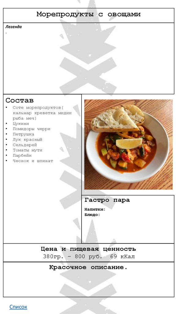 Морепродукты с овощамиЛегенда