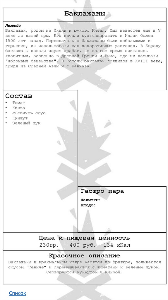 • Баклажаны