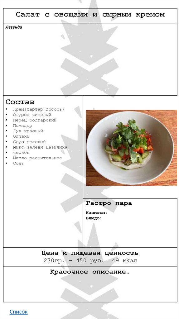 • С овощами и сырным кремом