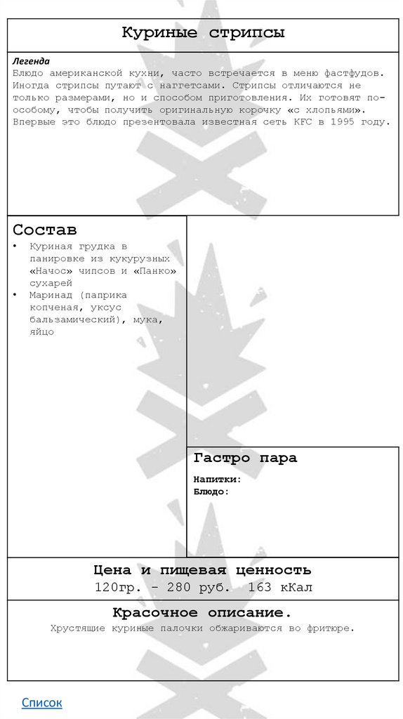 • Куриный стрипсы