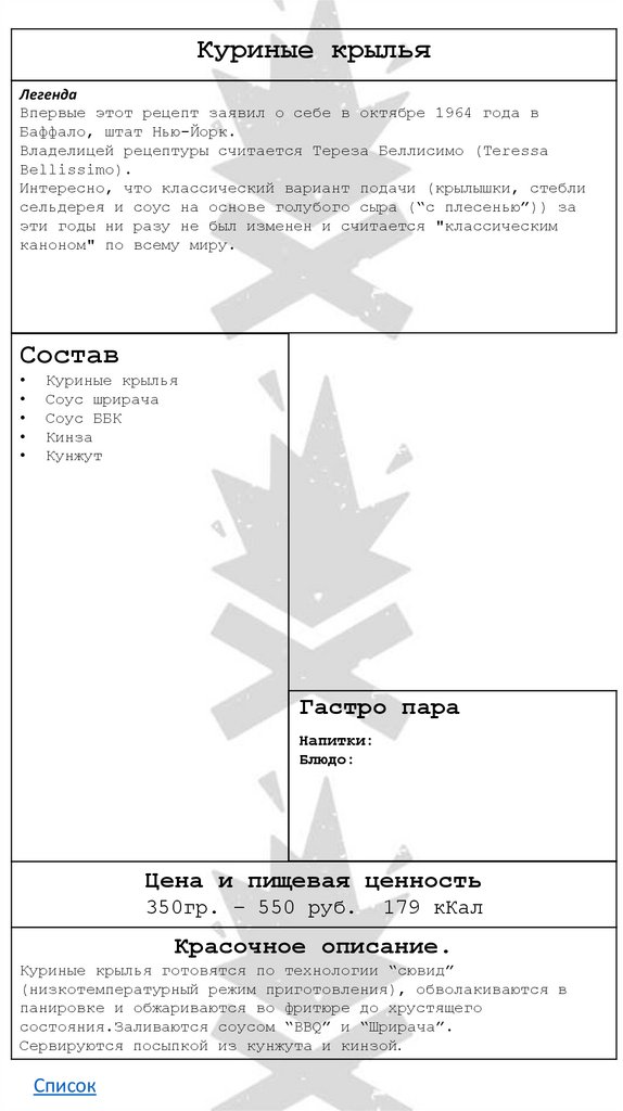 • Куриные крылья