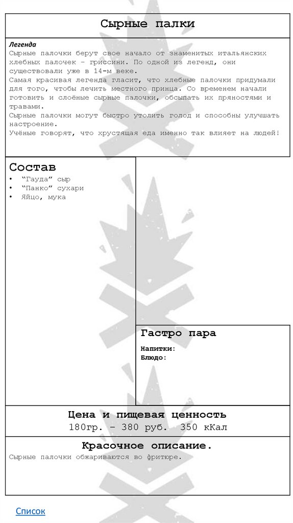 • Сырные палки