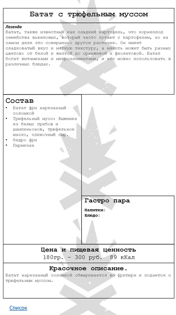 • Батат с сырным мусом