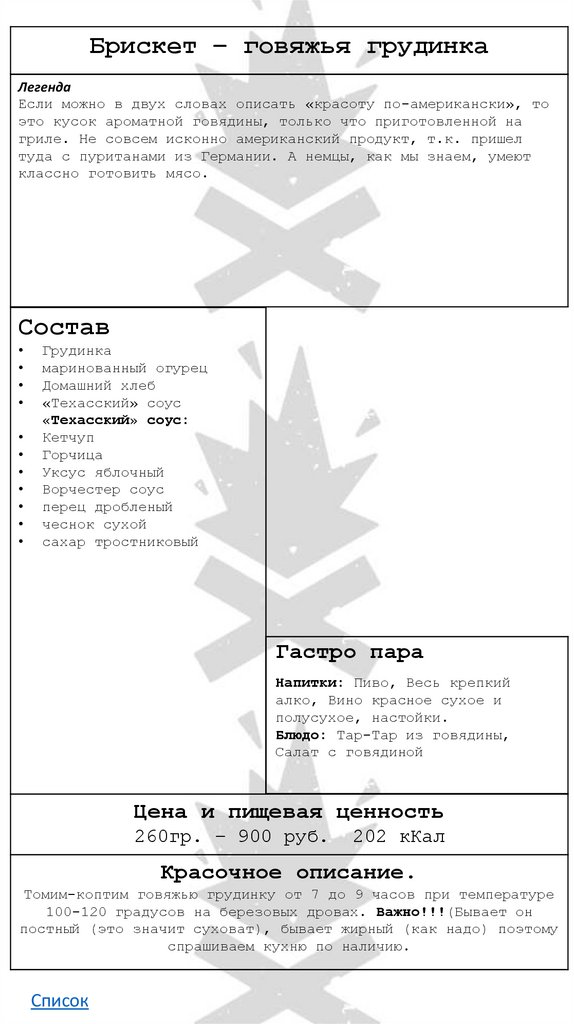 • Брискет-говяжья грудинка