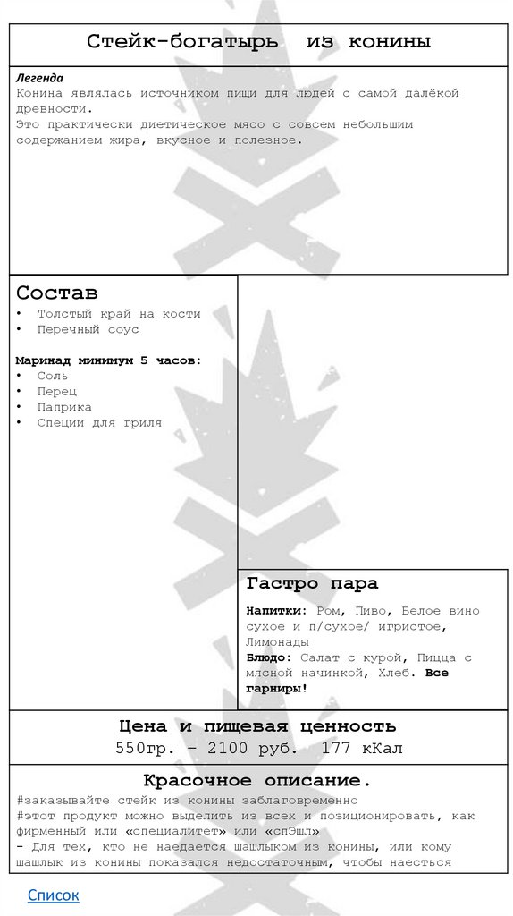 • Стейк-богатырь из конины