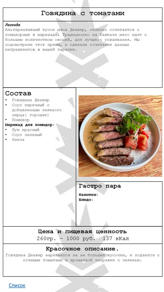 • Говядина с томатами