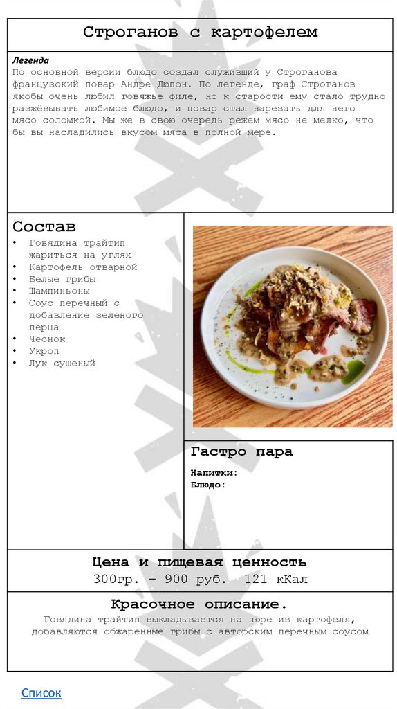 • Строганов с картофелем