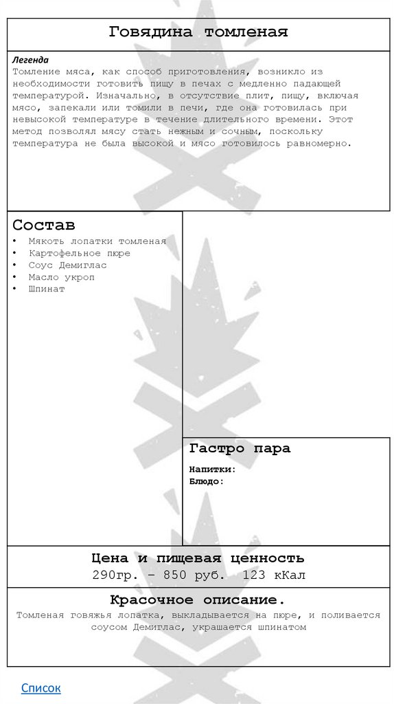• Говядина томленая