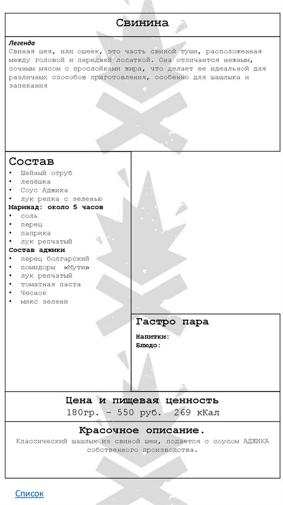 • Свинина