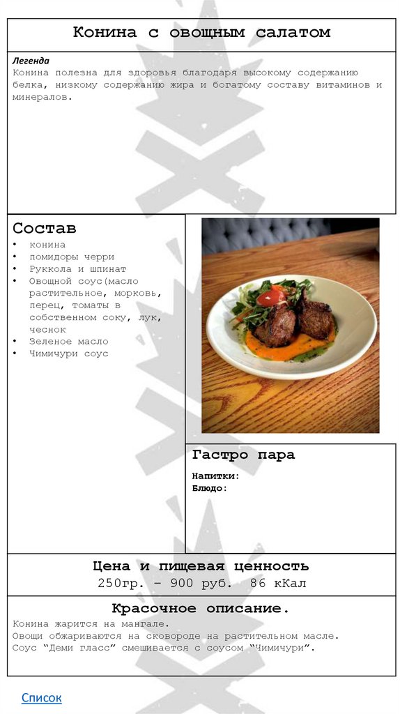 • Конина с овощным салатом