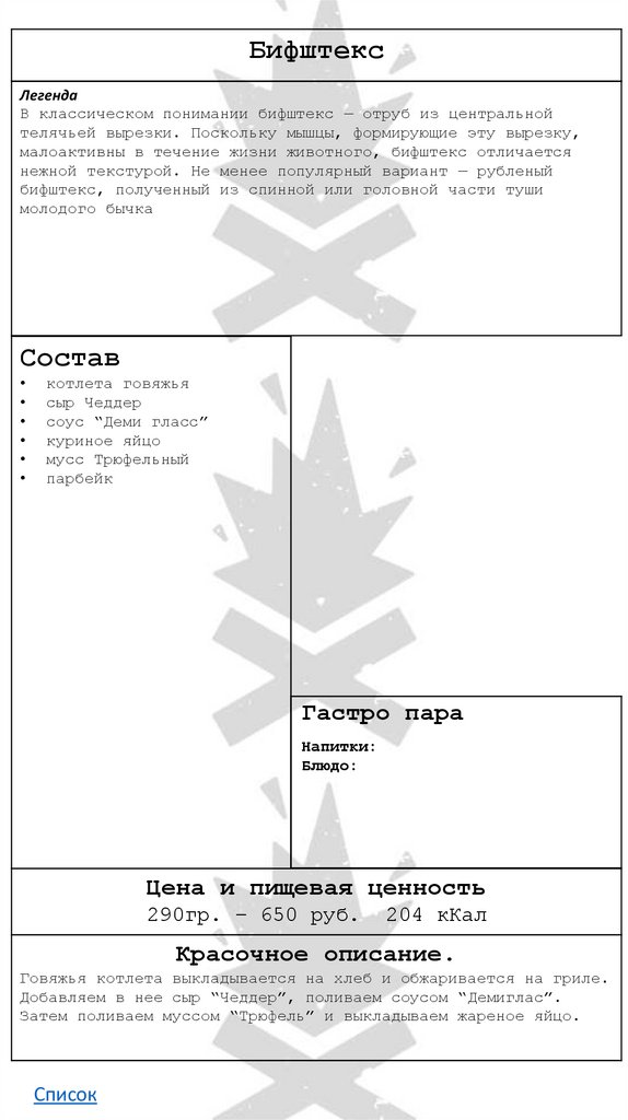 • Бифштекс